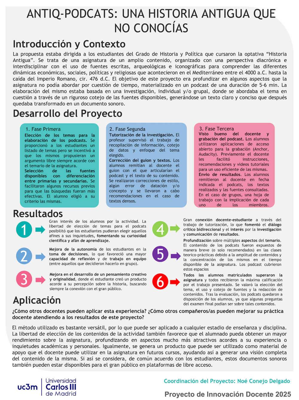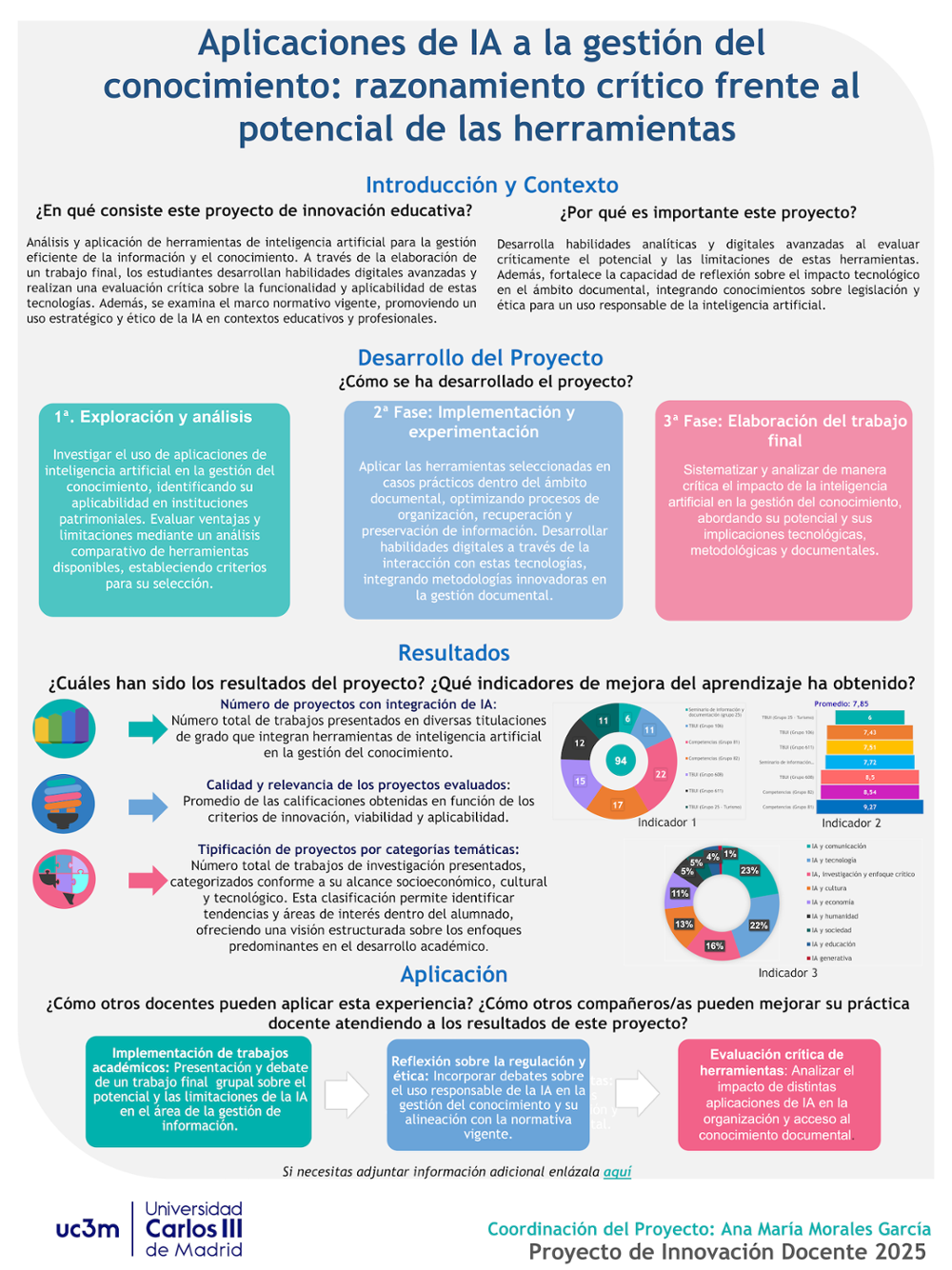 Memorias en formato póster de los proyectos que han obtenido reconocimiento en la 22ª Convocatoria de Apoyo a Experiencias de Innovación Docente. Curso 2024-2025.