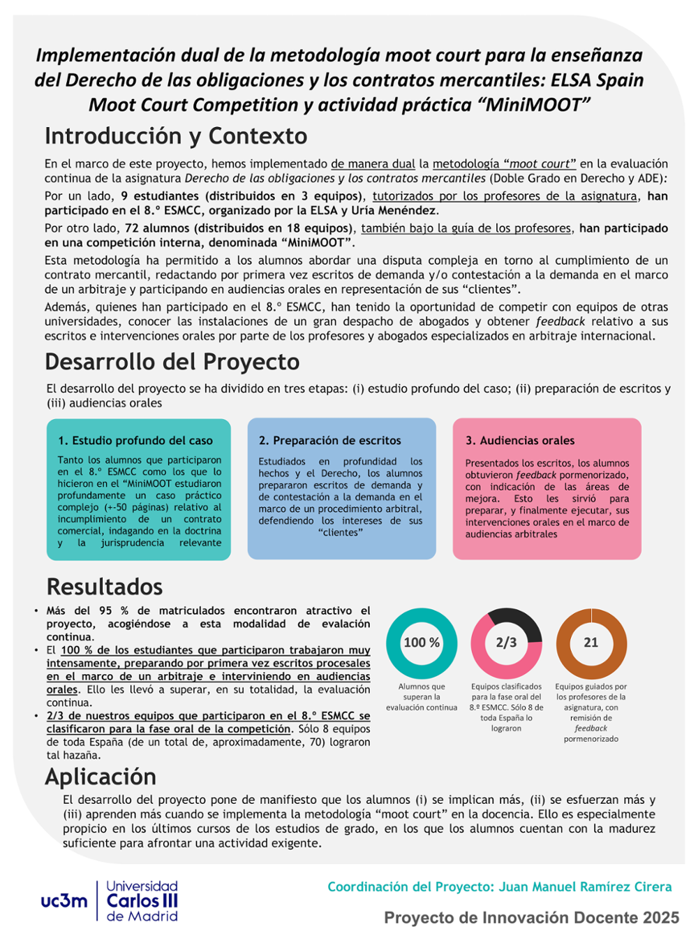 Implementación dual de la metodología moot court para la enseñanza del Derecho de las obligaciones y los contratos mercantiles: ELSA Spain Moot Court Competition y actividad práctica "MiniMOOT"