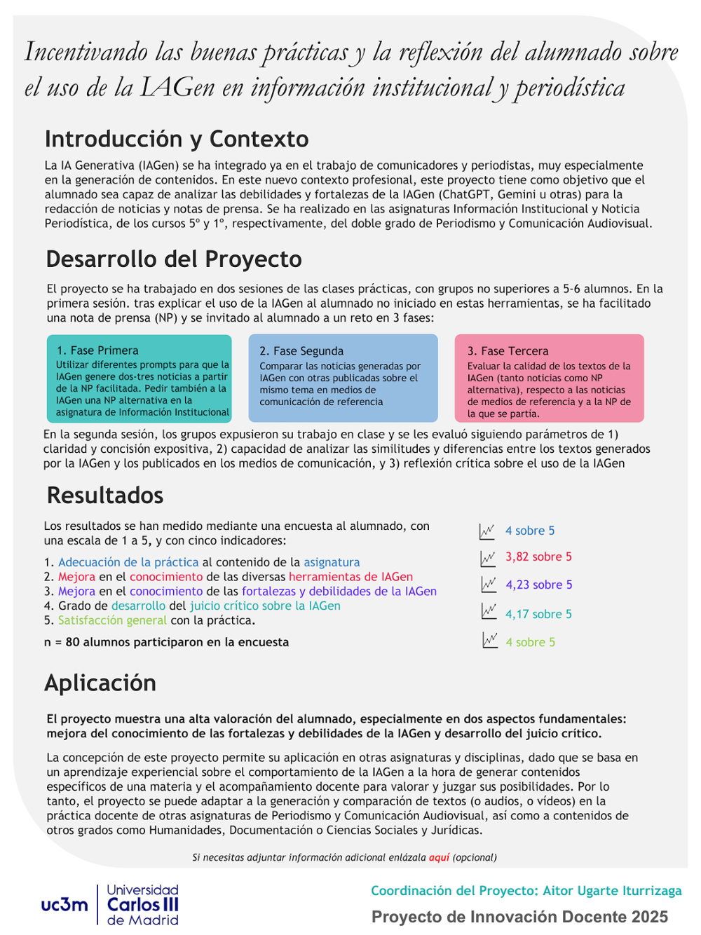 Incentivando las buenas prácticas y la reflexión del alumnado sobre el uso de la IAGen en información institucional y periodística
