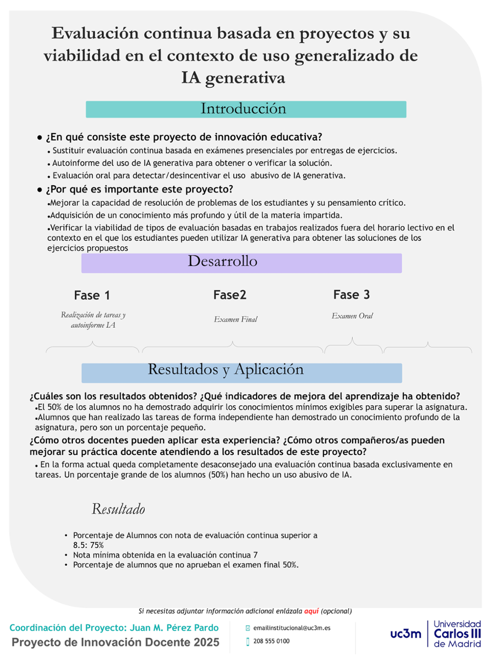 Evaluación continua basada en proyectos y su viabilidad en el contexto de uso generalizado de IA generativa