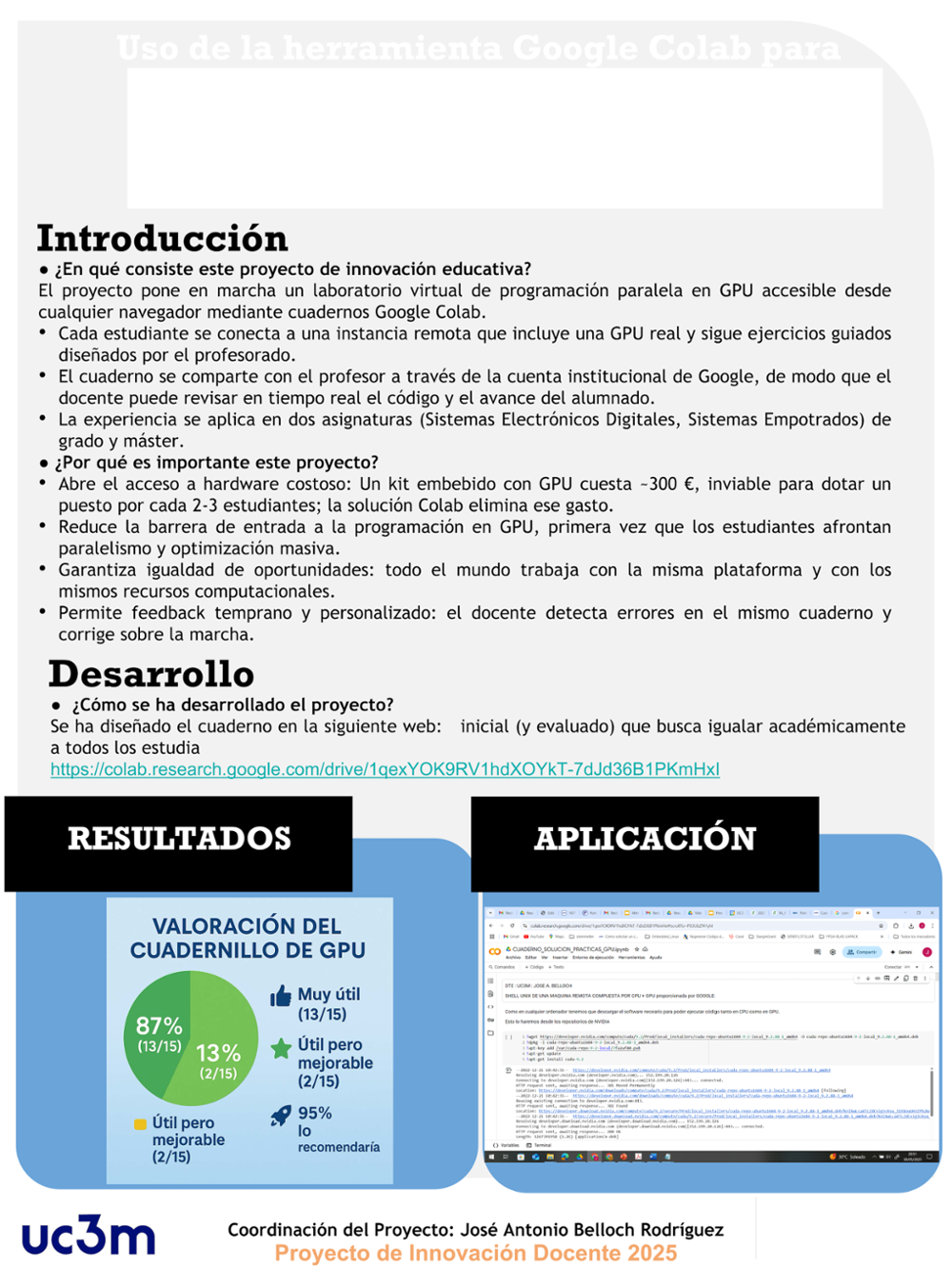 Uso de la herramienta Google Colab para laboratorio de GPUs en asignaturas relativas a Sistemas Electrónicos Digitales
